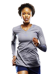 Long sleeve with V-neck. Relaxed fit allows complete freedom of movement. 100% microfiber polyester pk maX. Inherent moisture wicking to keep you dry and comfortable. Treated with BodyFreshe to inhibit the growth of odor causing bacteria. Breathable, easy care. S - 3XL